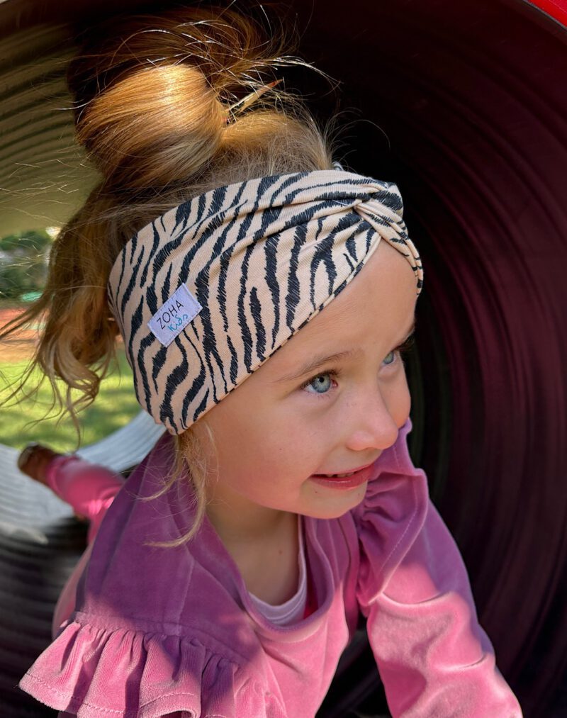 Opaska z charakterystycznym supełkiem na przodzie. Szerokość idealnie zasłaniająca całe ucho.