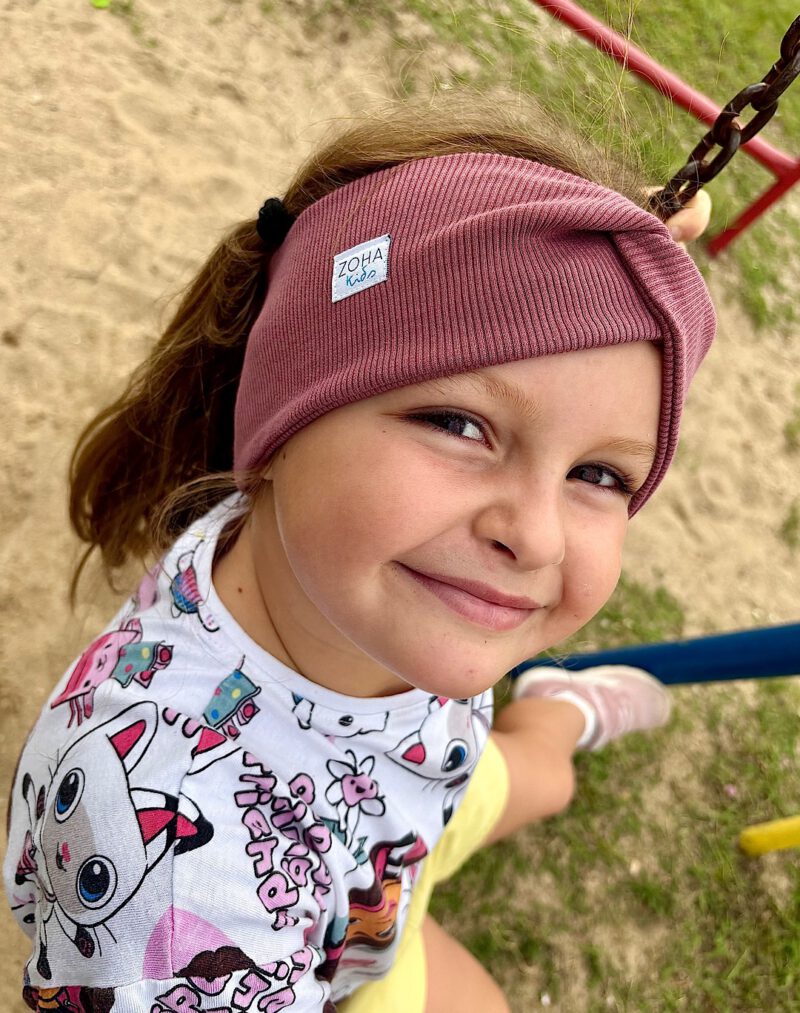 Opaska z charakterystycznym supełkiem na przodzie. Szerokość idealnie zasłaniająca całe ucho.