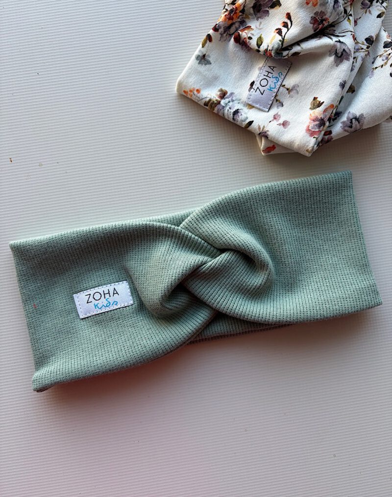 Opaska z charakterystycznym supełkiem na przodzie. Szerokość idealnie zasłaniająca całe ucho.