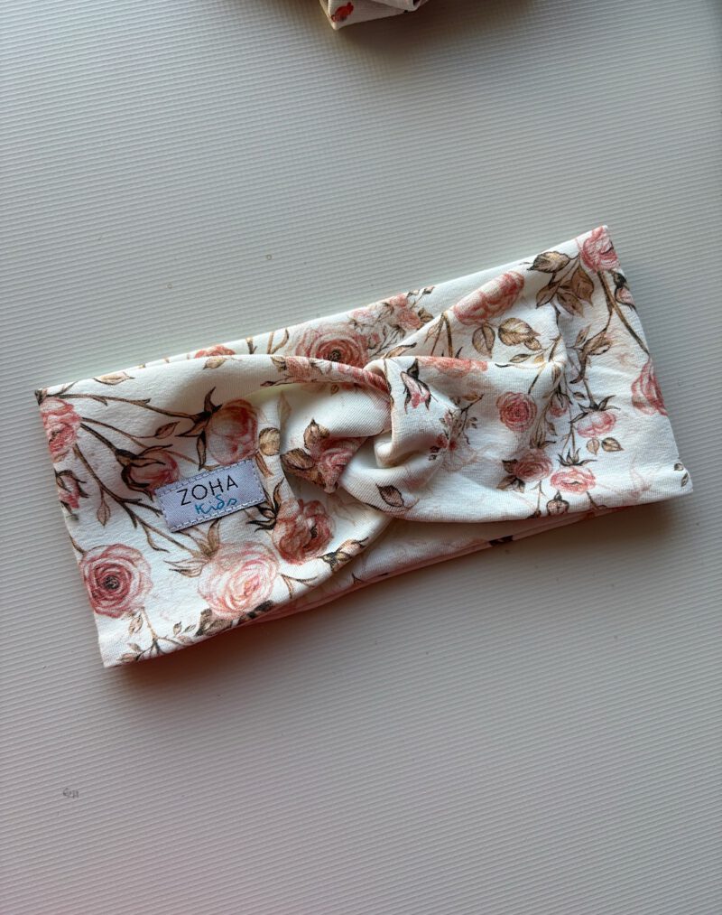 Opaska z charakterystycznym supełkiem na przodzie. Szerokość idealnie zasłaniająca całe ucho.