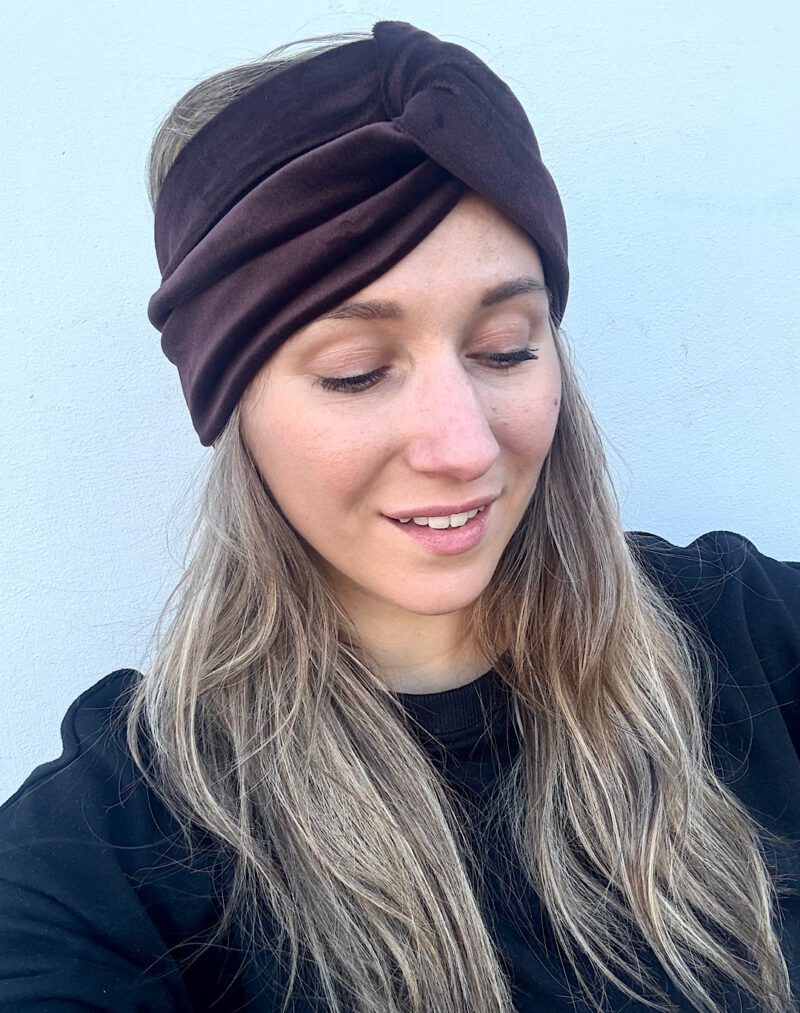 SZEROKA OPASKA VELUROWA DARK CHOCOLATE