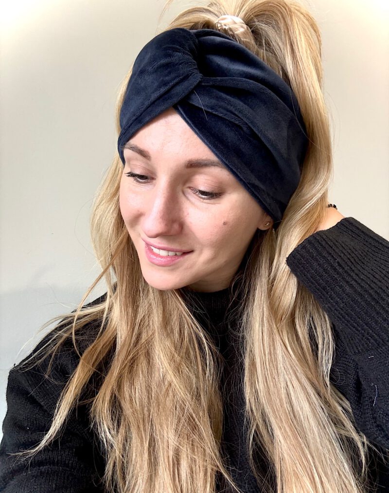 Wyjątkowa opaska damska wykonana z elastycznej dzianiny welurowej. Szerokość zależna jest od indywidualnego ulożenia. Genialna alternatywa czapek. Rozmiar uniwersalny